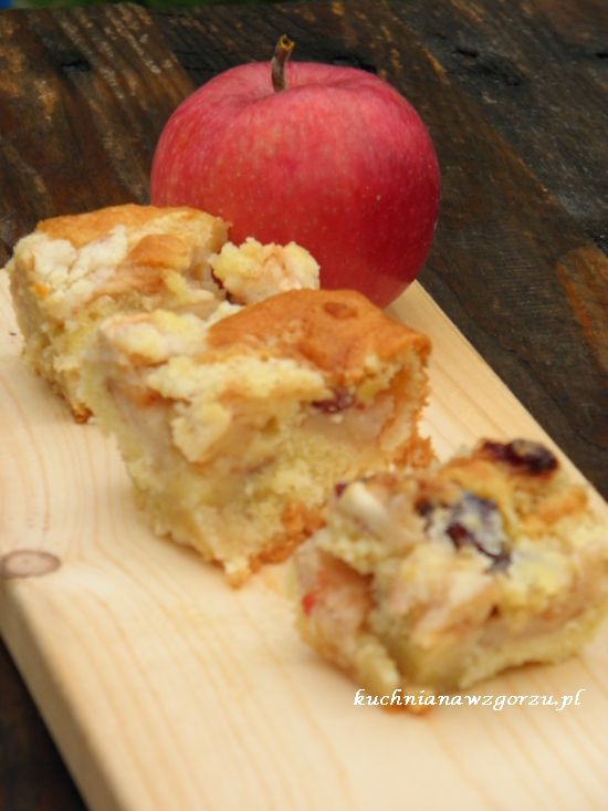 Ciasto z owocami to klasyk jesienny można do niego dodać prawie wszystkie owoce, ja tym razem dodałam jabłka, kilka śliwek, kilka gruszek i resztkę żurawiny suszonej. Ciasto wyszło wilgotne i pyszne. Zabrałam całe do pracy zniknęło ..