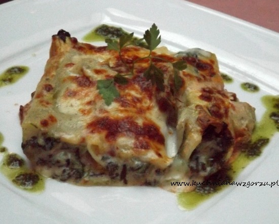 A dla Michała canelloni nadziewane szpinakiem i karczochami zapiekane sosem beszamelowo-pomidorowym z serem mozzarella – dobre, poprawne, po prostu smaczne.