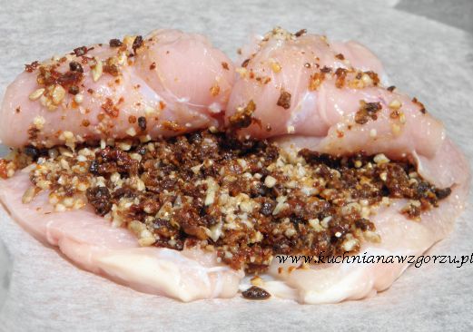 Pierś z kurczaka ułożyć na papierze do pieczenia.