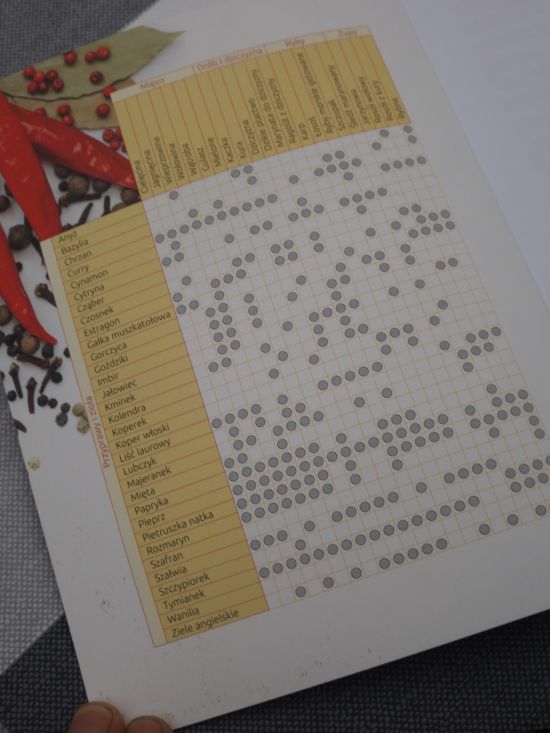 Po otwarciu książki na okładkach witają nas grafiki pokazujące jak można komponować zioła z innymi składnikami takimi jak mięsa, warzywa, drób i dziczyzna, zupy, sałatki, warzywa i grzyby.