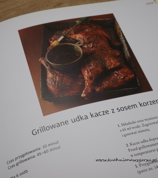 Potem są marynaty np. takie jak sos z orzeszków ziemnych, sos oliwkowo – majonezowy, biały sos barbecue. A na kolejnych stronach pojawiają się już przepisy na wędzone orzechy z przyprawami, steki z polędwicy wołowej z marynatą martini, żeberka po wietnamsku wędzone na drewnie wiśniowym i wiele, wiele innych. Przy prawie każdym przepisie jest zdjęcie lub kilka zdjęć, które zachęcają do zjedzenia od razu danej potrawy.