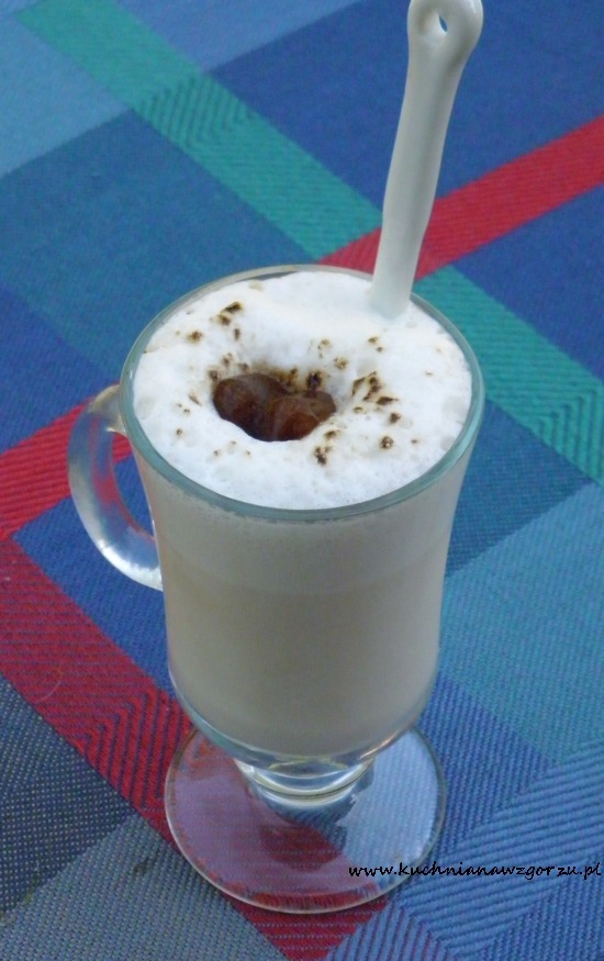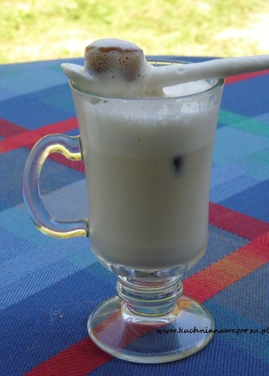 Kawę przelać do foremki i zamrozić ( dla tych co lubią słodką kawę do filiżanki zaraz po zrobieniu kawy można dodać cukier, zamieszać tak żeby cukier się rozpuścił i wtedy zamrozić ). Do słoika nalać mleko i dodać zamrożoną kawę w postaci lodowych serduszek, zakręcić słoik i potrząsać nim tak jak shakerem do drinków ( czyli góra – dół ). Jak kostki kawowe zaczną się rozpuszczać przelać całość do szklanki. Na górze pojawi się pianka, a mleko będzie zmieniało swój kolor na coraz bardziej kawowy. Mojemu kawoszowi bardzo smakowało :)