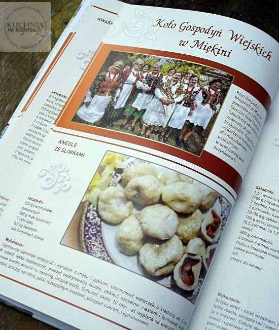 Znajdziemy wśród nich przepisy na zupę kminkową z grzankami, żur biały na króliku, wodzionkę do ziemniaków pieczonych, staropolskie wino z mleczy, żurek z uszkami (!), kaszę z fasolą i suszonymi owocami, drożdżowy warkocz nadziewany po tenczyńsku, wiśniak wolański, polewkę z jabłek.
