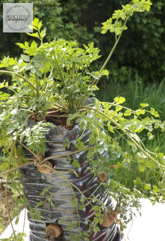 i moja pietruszka w butelce po wodzie ( 5 l ). Butelka wysypana ziemią, w nią powkładane pietruszki i proszę własną natkę mamy na co dzień i to świeżutką :)