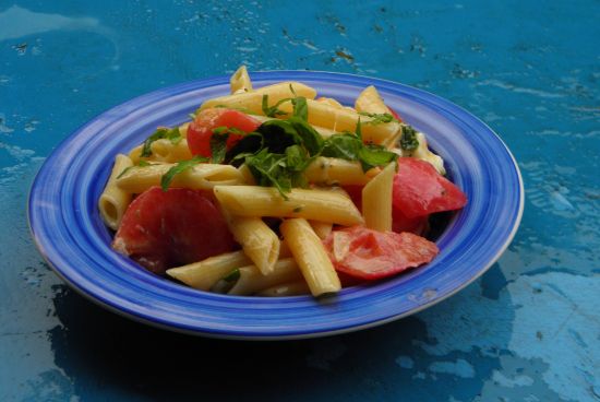 Makaron z sosem ze świeżych pomidorów, bazylii i sera