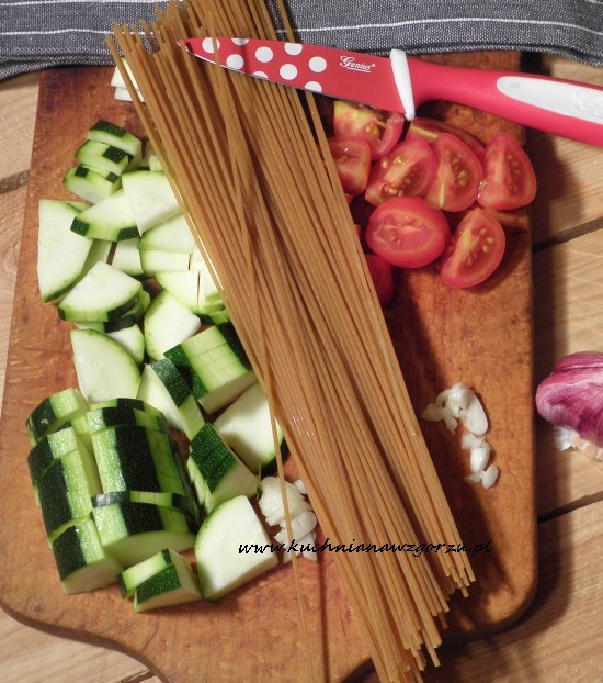 Przy przygotowywaniu tego dania używałam noży Genius Zestaw 4 częściowy – czyli noży czerwonych w białe kropki, które do testów przysłał mi sklep Redcoon.pl