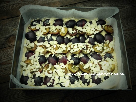 Właśnie zrobiłam, :) niestety nie miałam migdałów, więc, żeby dodać trochę charakteru- po upieczeniu i ostudzeniu polałam lukrem cynamonowym. Ciasto jest pyszne, wilgotne i pachnące jesienią/ nie żałowałam śliwek :)/. Szybko zrobione i prawie zjedzone :)