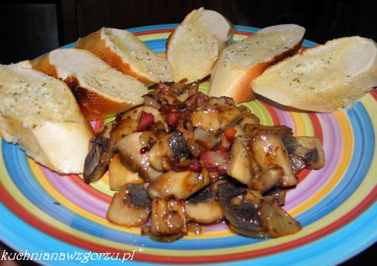 Pieczarki z patelni w towarzystwie boczku