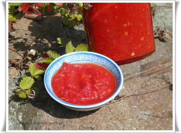 Ostatnio przeczytałam u Ewy na blogu o Pikantnym dżemie z pomidorów i chili, potem zobaczyłam go u Ziemianina i jako, że miałam chwilę czasu przystąpiłam do jego zrobienia.