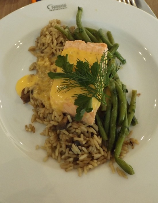 A potem dostaliśmy pyszną zupę pomidorową oraz łososia z warzywami i pysznym sosem :)