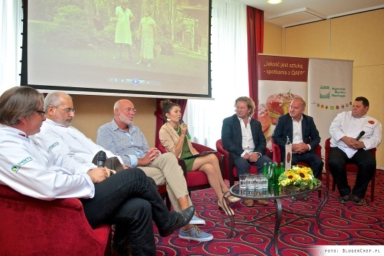 Impreza z cyklu „Jakość jest sztuką – spotkanie z QAFP” udział wzięli: prezes UPEMI Wiesław Różański, Ambasadorowie QAFP- Paweł Królikowski i Piotr Machalica, Mistrzowie Kuchni QAFP – Dariusz Zahorański, Adam Michalski i Carlos Gonzalez – Tejera.