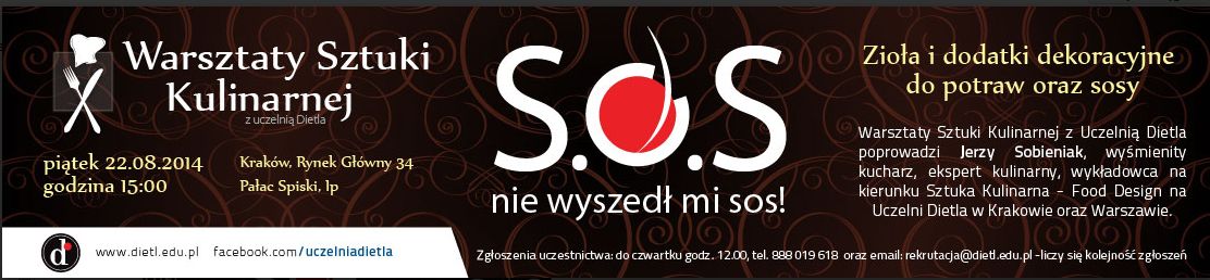 S.O.S nie wyszedł mi sos to warsztaty kulinarne, które odbędą się jutro w Małopolskiej Szkole Wyższej im J. Dietla w samym centrum Krakowa.