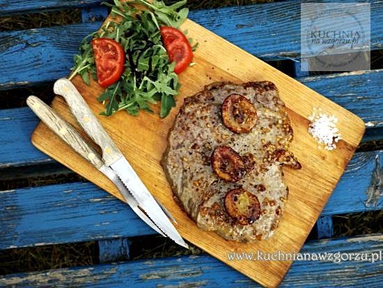 Stek z rostbefu z musztardą gruboziarnistą i miodem