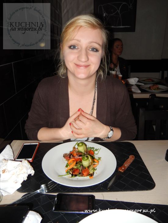 Później każda z nas dostała po plastrze pieczonego rostbefu i zaczęła się zabawa w przyrządzanie danie z jego wykorzystaniem. Ja pokroiłam mój plaster na cienkie paseczki i zrobiłam roladki z grillowanym bakłażanem i cukinią. Były smakowite ! i moje roladki zostały wybrane przez p. Dawida jako najlepsze danie.