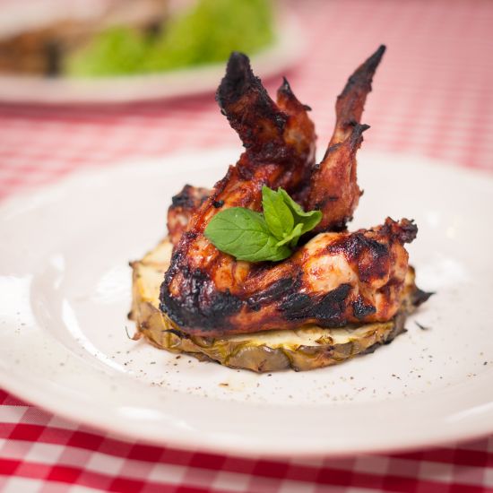 Grillujemy ananasa i skrzydełka i wspólnie podajemy.
